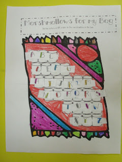 On Thursday we did a little addition activity. We shared marshmallow stickers with a friend. If we hadn't been so rushed for time, this would have been a super fun activity!